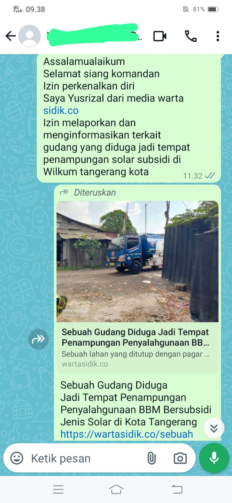 Tidak adanya respon atau tindakan terkait pemberitaan dan informasi beberapa media online beberapa hari lalu mengenai gudang diduga penimbun solar subsidi yang berada di jl.Rasuna Said RT.002/002 Pakojan,kecamatan Pinang,Kota Tangerang.