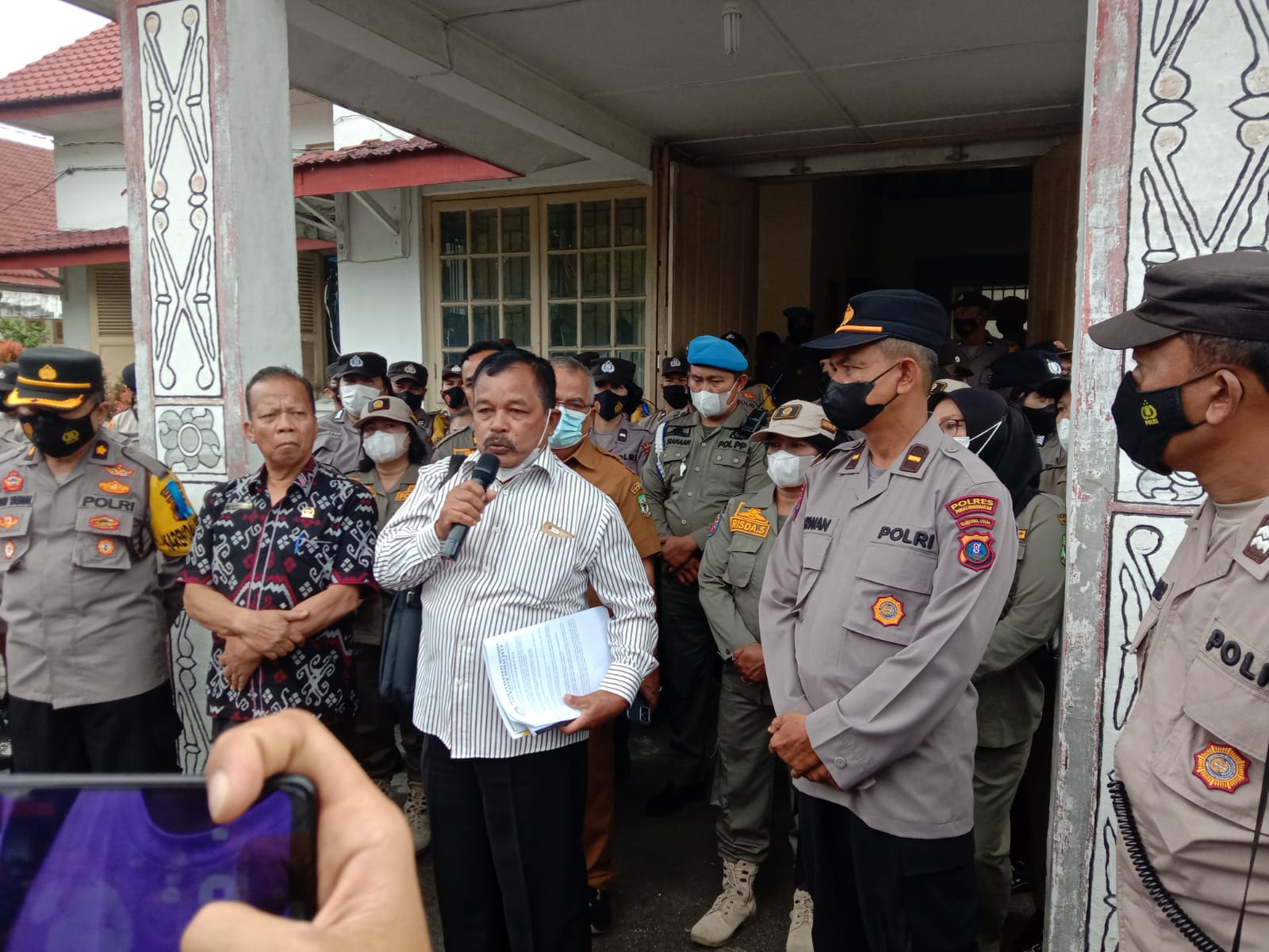 Di depan gedung DPRD, massa diterima perwakilan dari DPRD, diantaranya Baren Alijoyo Purba serta beberapa orang perwakilan DPRD lainnya.