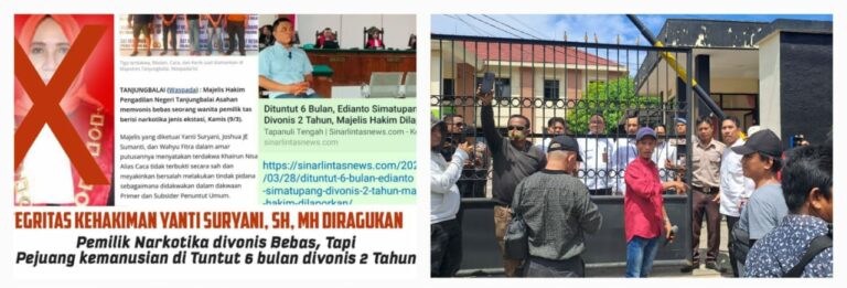 “Kami dari Aliansi Mayarakat Anti Penindasan (AMAN) Kabupaten Tapanuli Tengah mengutuk keras putusan hukum yang dijatuhkan oleh Yanti Suryani Siregar selaku Ketua Majelis yang menyidangkan Edianto Simatupang yang diduga kuat tidak berkeprimanusiaan dan keadilan,” kata Beno.