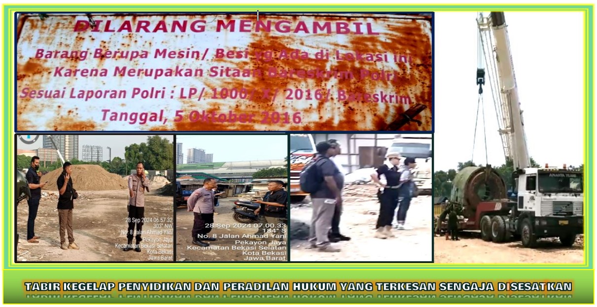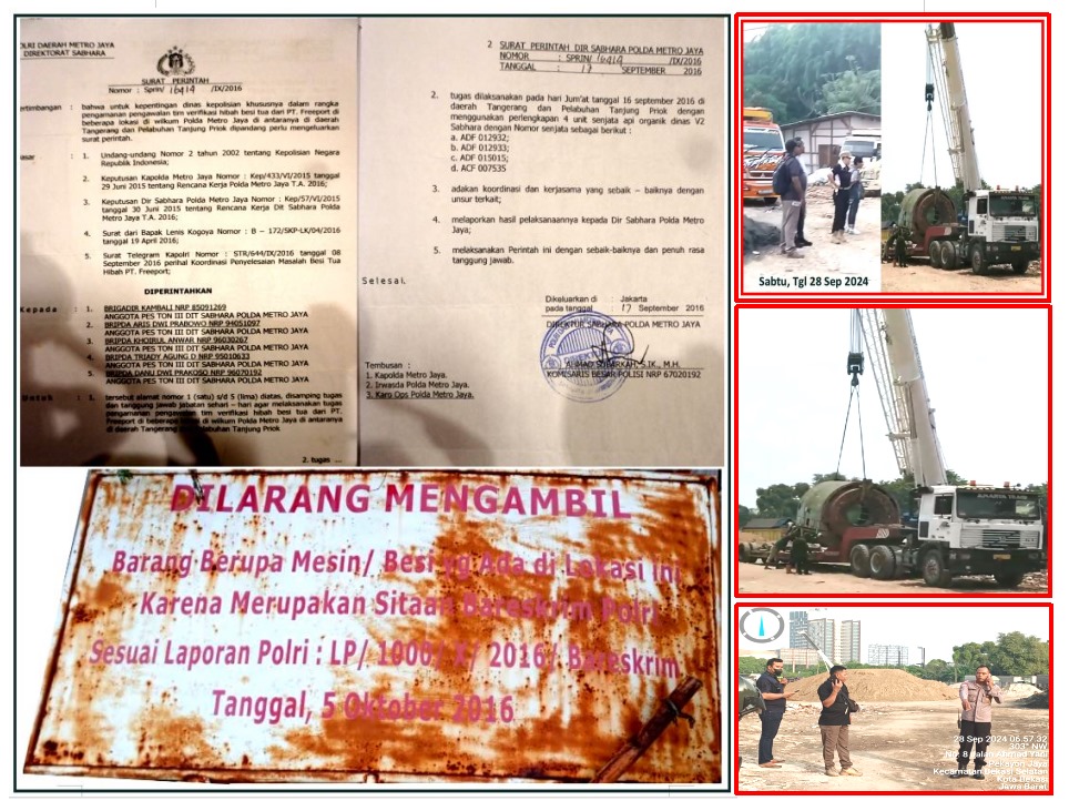 Berdasarkan Hasil Fakta Fakta Penyidikan Bahwa Barang Bukti Berupa 2 Mesin Turbin Yang Saat Ini Berada di Lahan Kosong Samping Apartemen Mutiara Bekasi Jln.Ahmad Yani No.8 Rt.005 Rw.002 Kel.Pekayon Jaya adalah Bukan Berasal Dari Eks Besi PT.FREEPORT INDONESIA dan Status Terhadap Barang Bukti Tersebut MASIH Menjadi Objek Penyitaan Penyidik Subdit I Dittipidum Bareskrim Polri Sebagai Mana Surat Penetapan Penyitaan Pengadilan Negeri Bekasi. Dan Bareskrim Polri itu Menegaskan Dalam Suratnya Bahwa Tidak Pernah Menerbitkan atau Mengeluarkan Terkait Hak Pinjam Pakai Barang Bukti.
