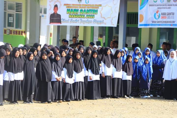 Untuk itu melalui momen upacara hari santri tahun 2023 ini mari kita bersama-sama mendoakan para pahlawan terutama dari kalangan ulama, kiyai, santri yang telah syahid di medan perang demi kemaslahatan bangsa dan agama.
