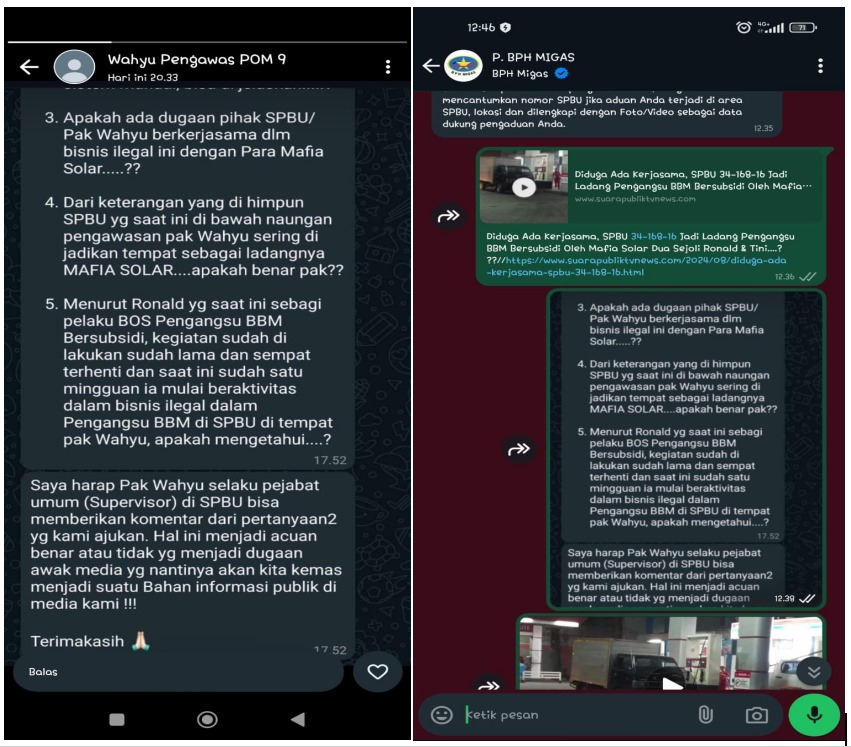 Dinilai sudah melecehkan profesi wartawan oleh oknum inisial ‘W’ selaku Supervisor (pengawas) SPBU 34-168.16 kepada awak media wartawan dari suarapubliktvnews.com yang di anggap sudah meledek dan merendahkan dengan di screenshot nya (SS) konfirmasi wartawan oleh dirinya , Oknum Pengawas SPBU inisial ‘W’ malah membuat setatus.