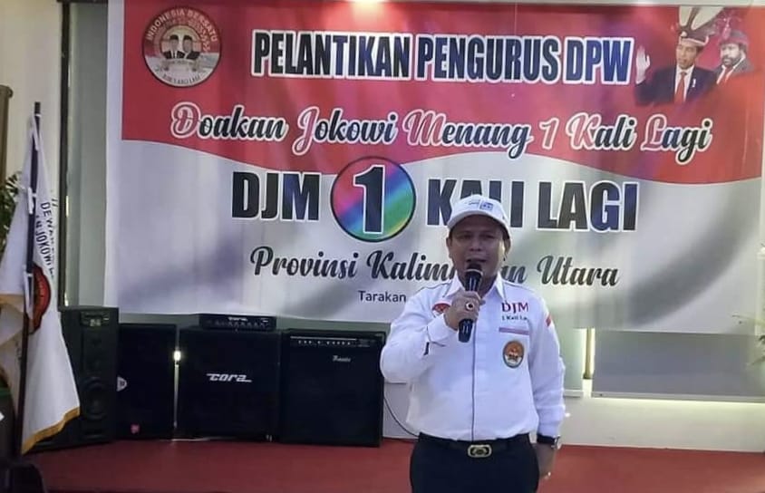 Abednego Panjaitan saat melantik pengurus relawan DJM 1 Kali Lagi Propinsi Kalimantan Utara di Tarakan