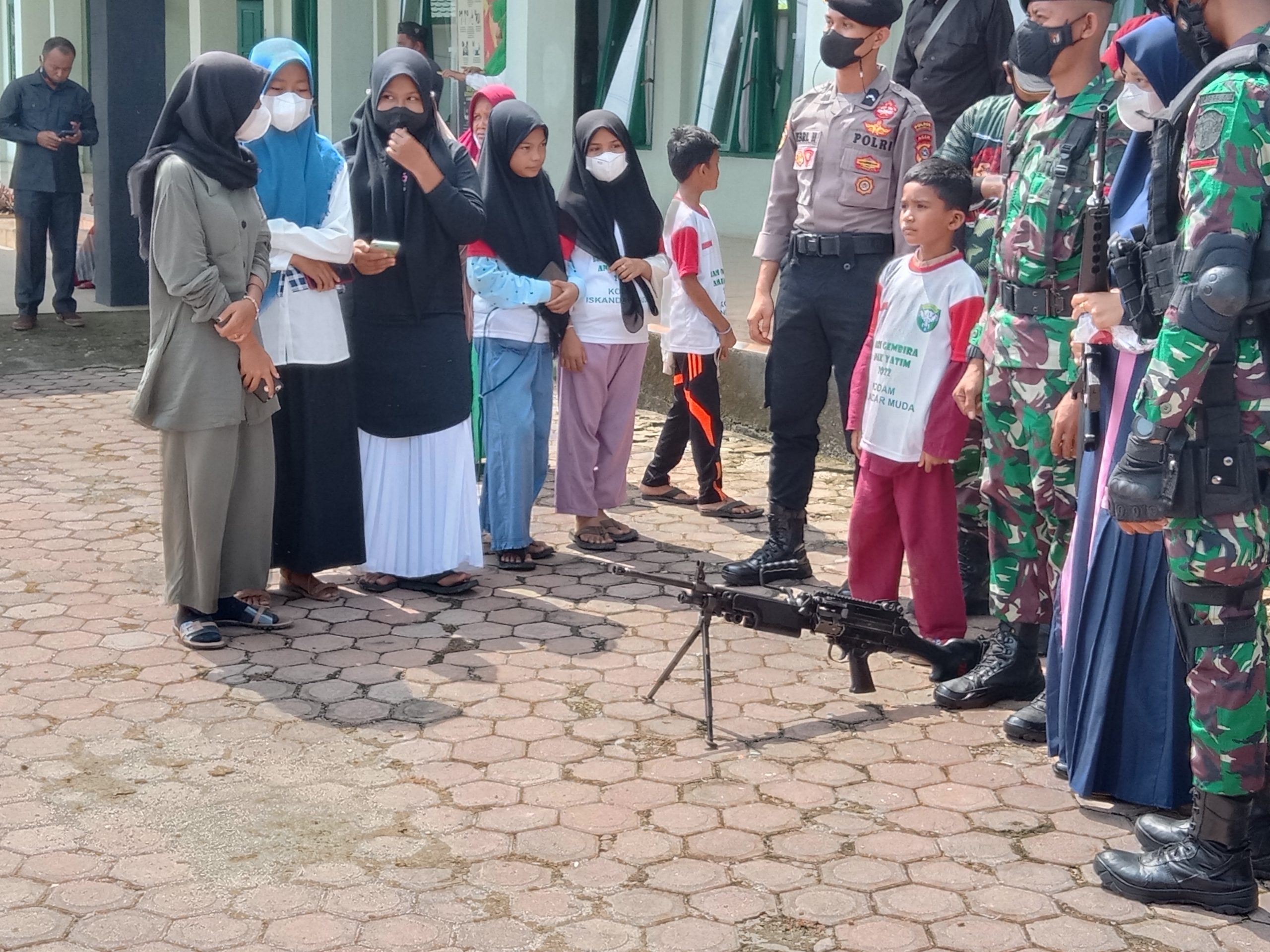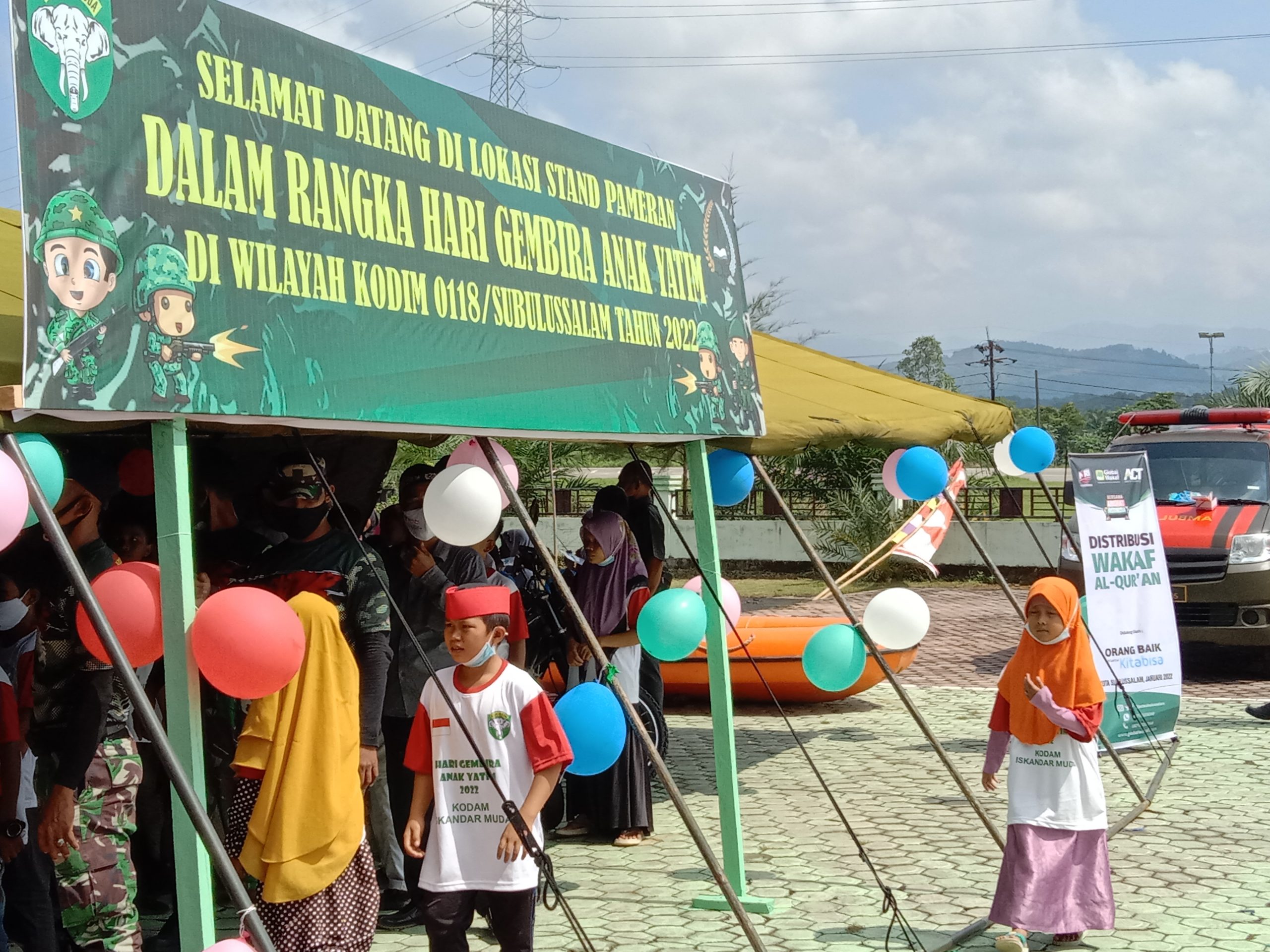 Selanjutnya, Dandim 0118 bersama Walikota dan Kakejari Subulussalam menyapa Anak-anak Yatim yang berada diwilayah Kodim 0118 dan Walikota Subulussalam memotivasi Anak Yatim untuk bergembira ria dengan berbagai aneka alat peraga yang disiapkan personel Kodim.
