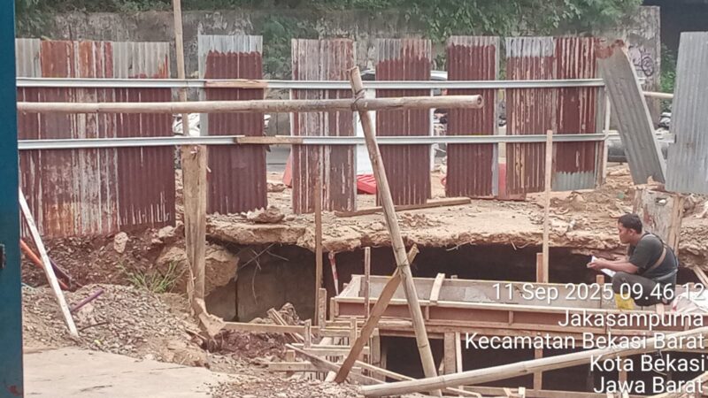 Terlihat di lokasi sudah ada rangka bambu untuk pemagaran. Lantas bagaimana PT KMU akan melanjutkan penggerjaanya jika sudah tertutup rapat??. Semakin lama penyelesaianya, lalu bagaimana tanggapan Pam Jaya terkait pekerjaan yang tak kunjung Rampung.
