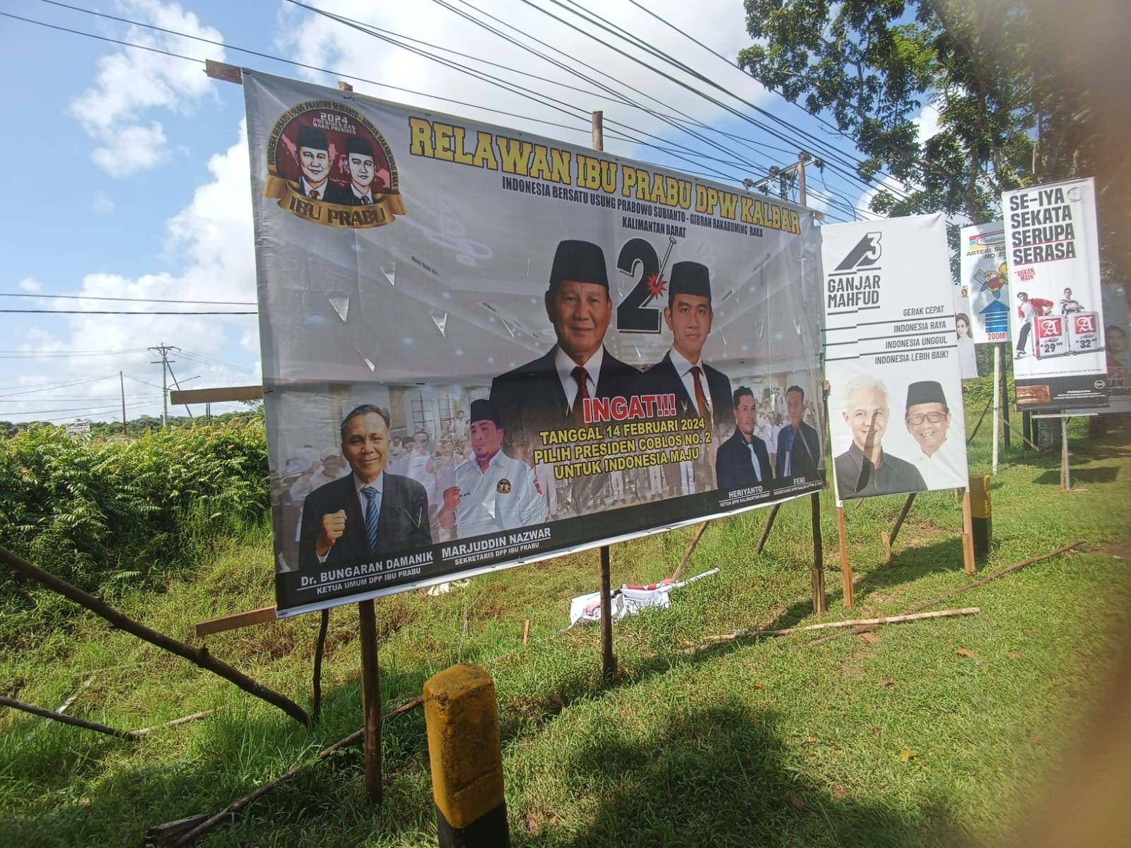 Baliho itu terpajang di perempatan Jalan yang merupakan salah satu lokasi strategis di Pontianak.”Masyarakat Kalbar mendukung Prabowo Subianto sebagai Calon Presiden dan Gibran Rakabuming Raka sebagai Calon Wakil Presiden,” demikian tertulis pada baliho itu.