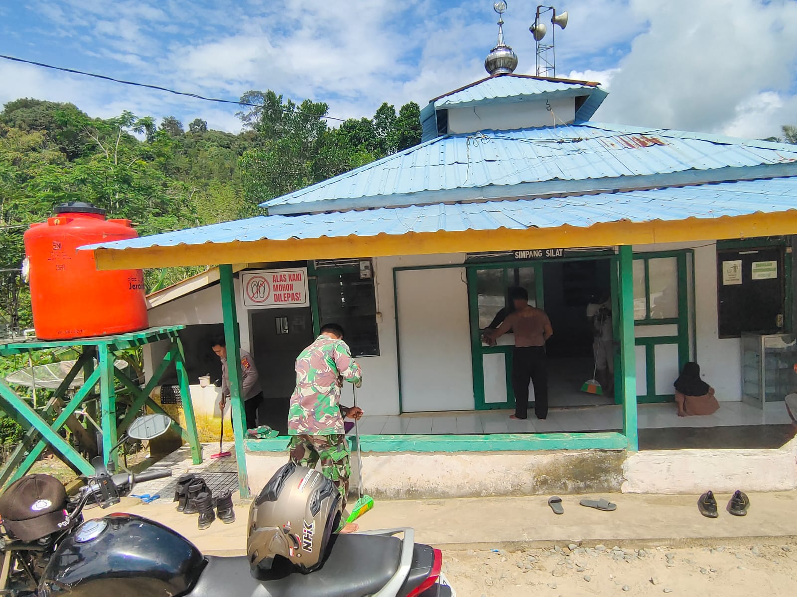 Dalam kesempatan ini Kapolsek Silat Hilir IPDA Egidius Egi, S.H., berikan apresiasinya terkait upaya dan kerja keras tim Polri dan TNI bergotong-royong kerja bakti membersihkan Surau Al Ikhlas.