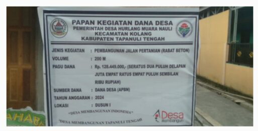 Mengenai bangunan Jalan Usaha Tani T.A 2023 sudah terealisasi sepanjang 260m,dalam hal ini Pemdes Hurlang Muara Nauli tetap melibatkan masyarakat dan sudah dimusyawarahkan bersama terlebih dahulu.” Ujar Dolmar Situmeang( KADES)
