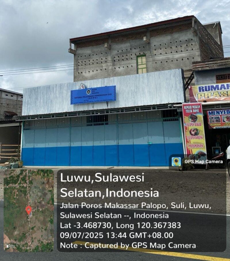 Dari pantauan awak berserta tim media lainnya yang turut ke lokasi, dapur MBG bertempat di Jalan Poros Makassar–Palopo itu tampak ditutupi terpal biru pada bagian depannya oleh pihak Satuan Pelayanan Pemenuhan Gizi (SPPG)