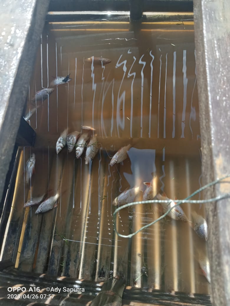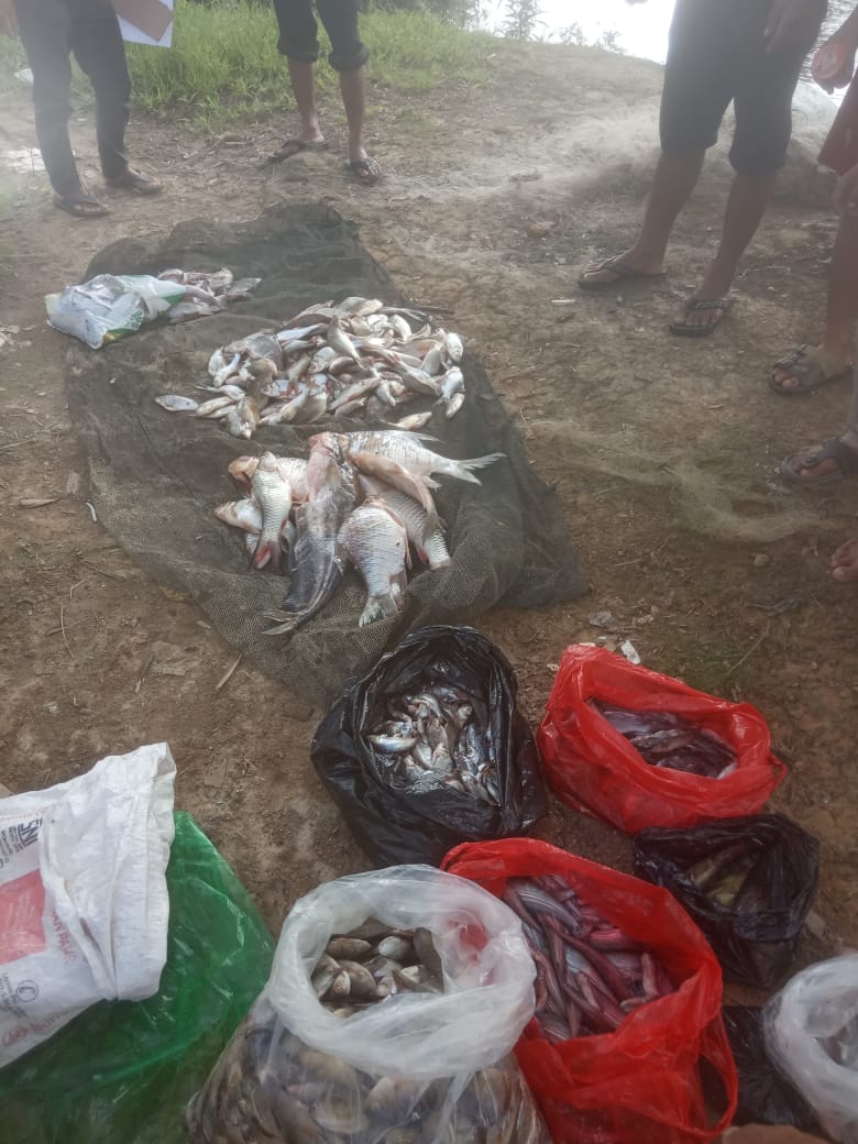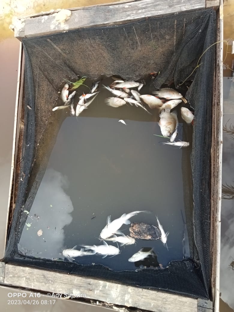 Warna air sungai berubah putih keabu-abuan, ikan-ikan pada mati. Masyarakat setempat berbondong-bondong turun ke sungai untuk mencari ikan yang mati tersebut.