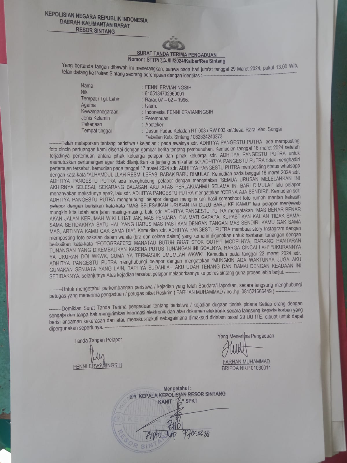 Fanny berharap dengan aduan dan laporan ini di polres Sintang untuk mengingatkan pelaku agar tidak menganggu ia lagi, kami hanya ingin proses permintaan maaf dari mantan tunangan dilakukan secara tertulis dan dihadiri oleh kepolisian, agar hal tersebut tidak terulang lagi., harapannya