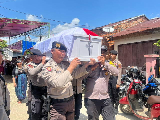 Upacara Pelepasan Jenazah Almarhum Aipda Hendrik Gabariel Sahat Homonangan langsung di pimpin Kapolres Sarolangun AKBP Budi Prasaetya, S.IK M.SI.