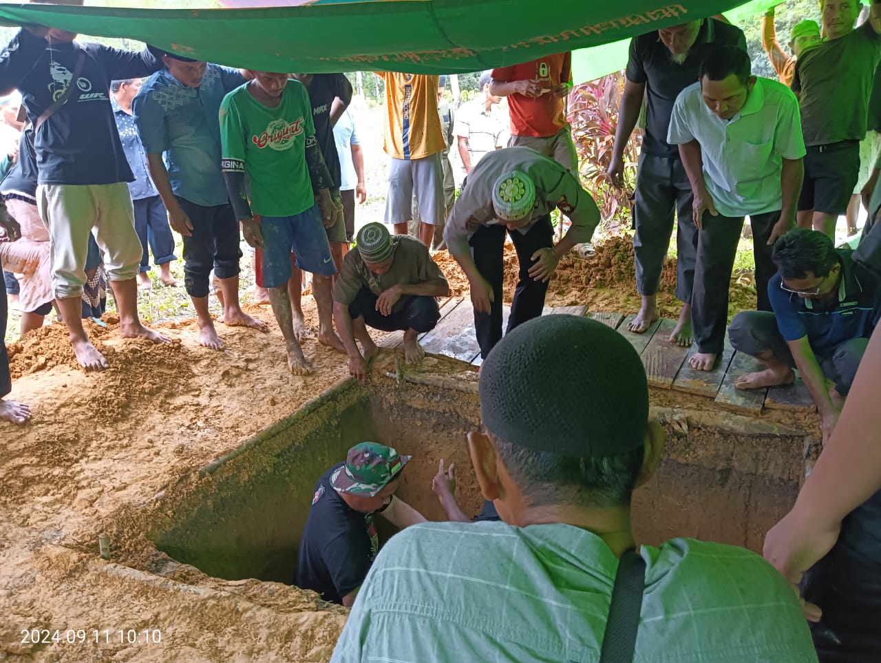 Aiptu Yanto, yang menjabat sebagai Ps. Paurdalpers Bag SDM di Polres Melawi, menunjukkan kepedulian sosialnya dengan turut serta dalam proses pemakaman warga di Dusun Linso Jaya, Desa Labang, Kecamatan Belimbing, Kabupaten Melawi.
