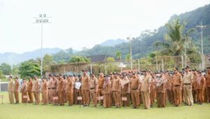 Apel Pagi Gabungan ini turut dihadiri oleh Sekda,Staf Ahli, Asisten, Pimpinan OPD Pemkab Tapteng, Camat dan ASN di Lingkungan Pemkab Tapteng. ( Red / Tim )