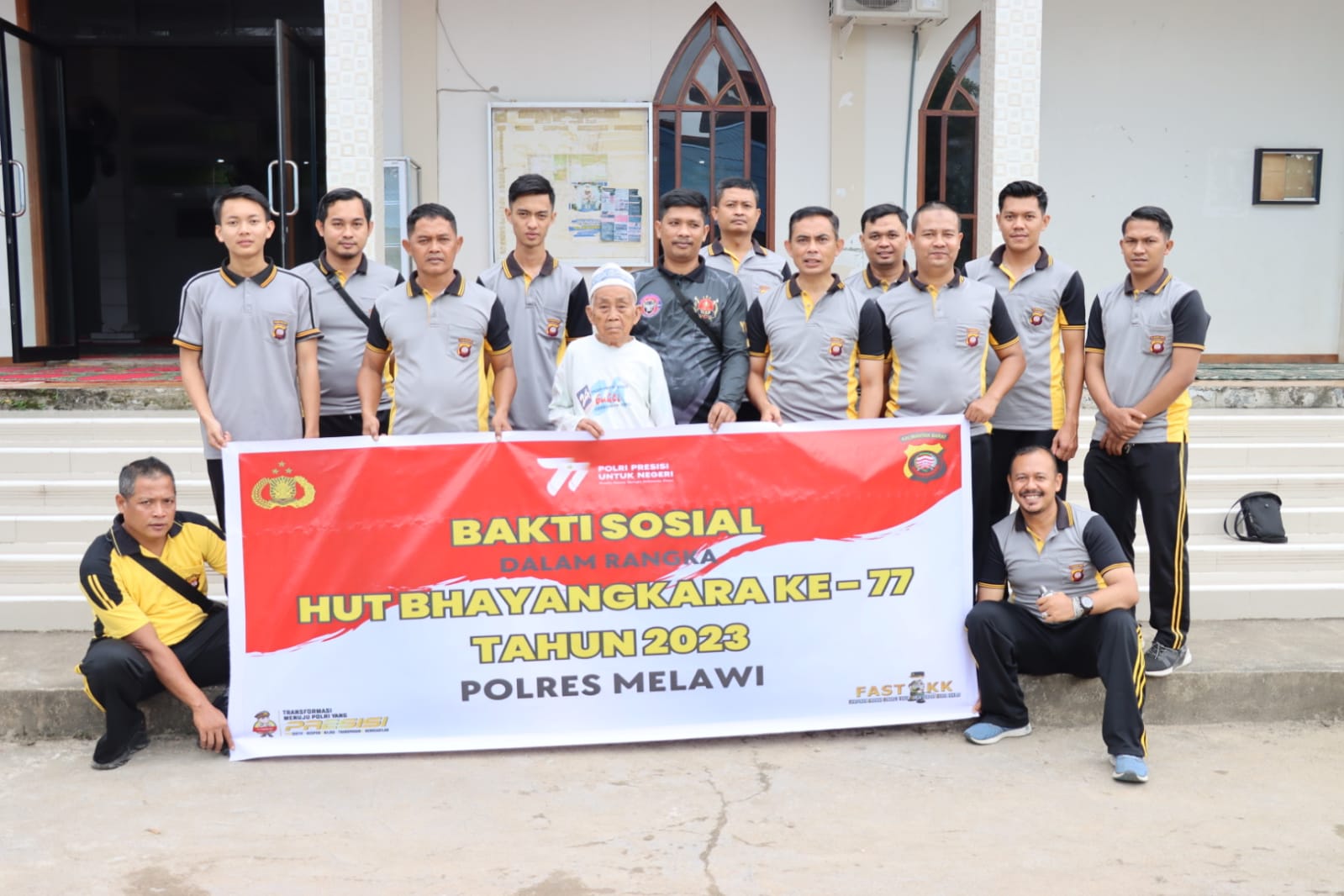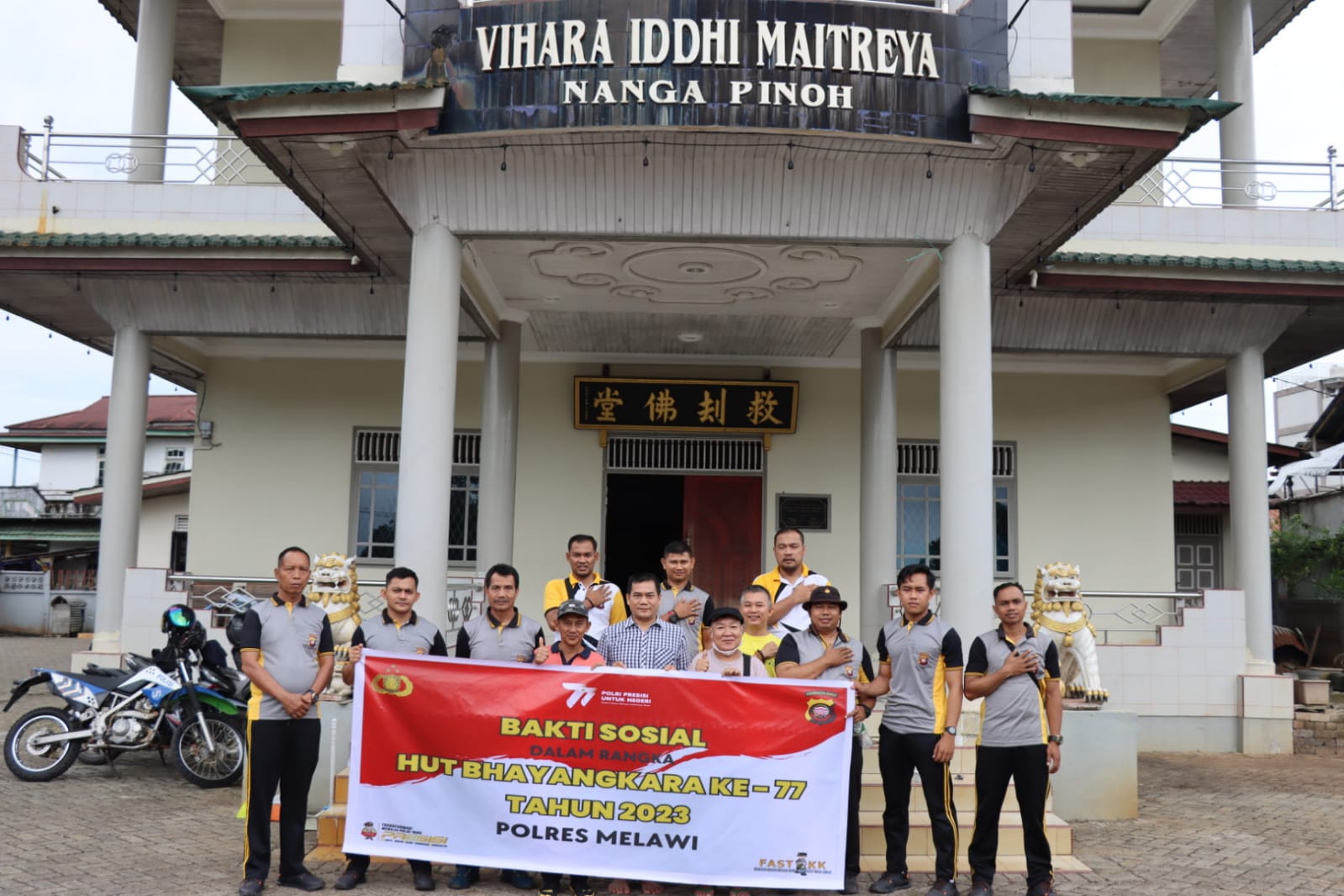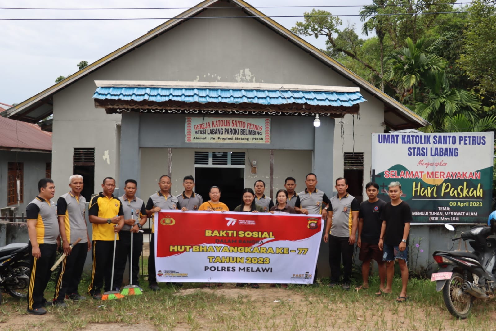 Dalam rangka menyambut hari Bhayangkara ke-77 Kepolisian Negara Republik Indonesia, Polres Melawi melaksanakan Bakti Sosial membersihkan 5 tempat ibadah.