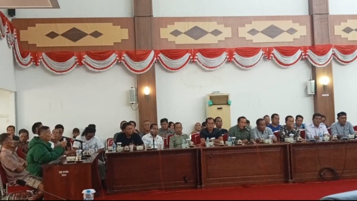 Ketua DPRD Kabupaten Kapuas Hulu saat beraudiensi bersama perwakilan masyarakat boyan tanjung,bunut hilir,bunut hulu dan wilayah di kapuas hulu serta para jajaran pemerintah kabupaten Kapuas hulu, instansi terkait, para tokoh masyarakat setempat dan berbagai perwakilan paguyuban penambang ema. (RED)