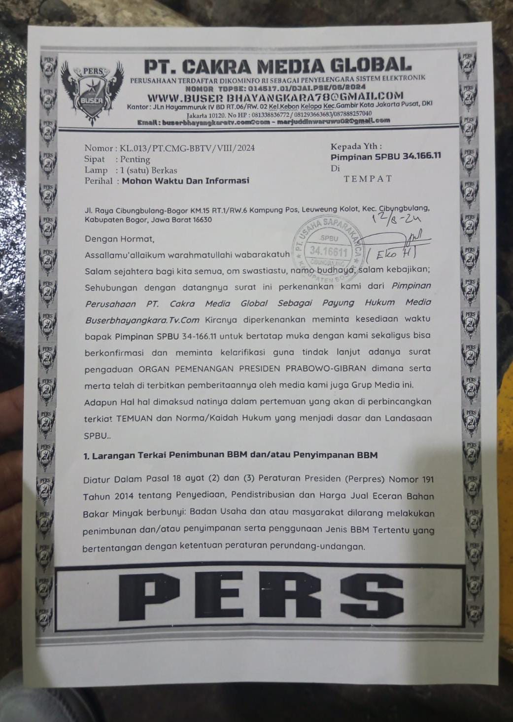 Dalam surat tersebut, Marjuddin Nazwar sekjend Ibu Prabu menyikapi dan menyayangkan adanya praktik diduga ilegal yang berpotensi menimbulkan kerugian negara yang sangat besar juga berdampak kelangkaan BBM bersubsidi sehingga dinilai tidak tepat sasaran kepada masyarakat, kemudian Ia menegaskan,