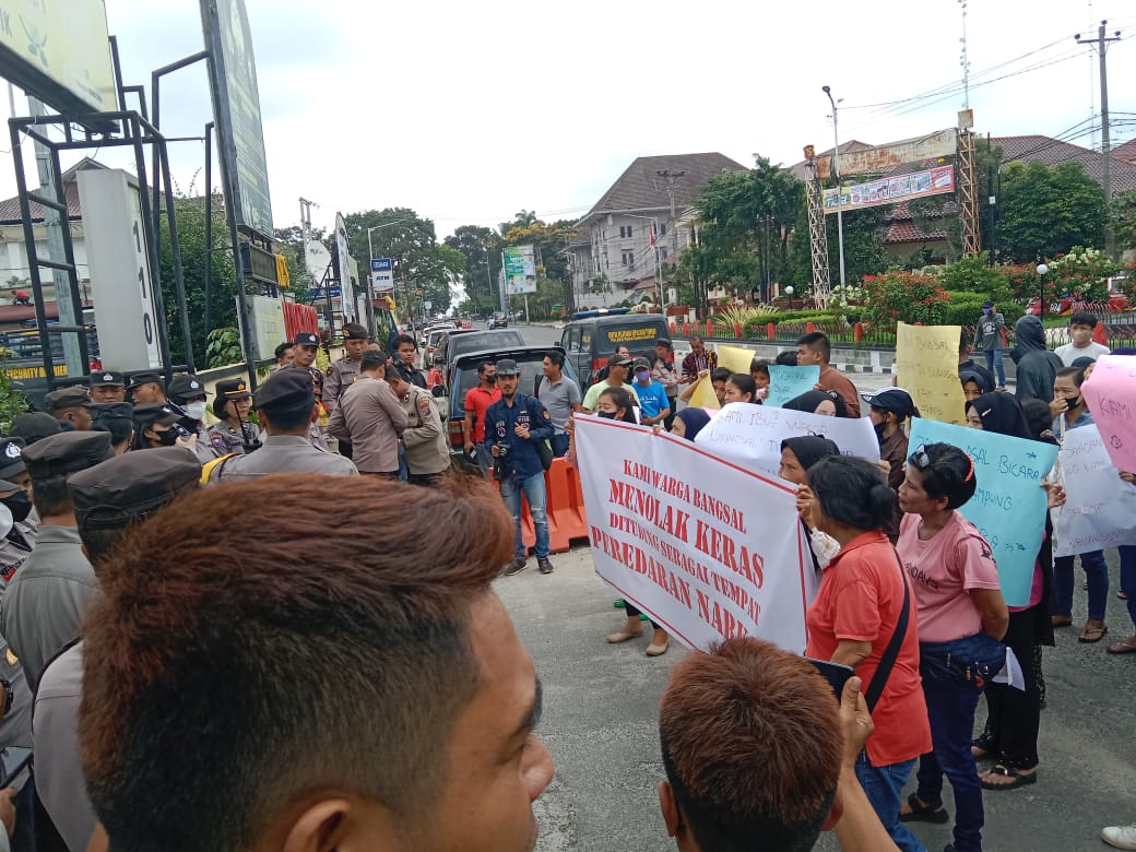 ” Secara tegas saya menolak kalau lokasi Bangsal disebut sebagai lokasi narkoba”, ucap Ana Pasaribu dalam orasinya.